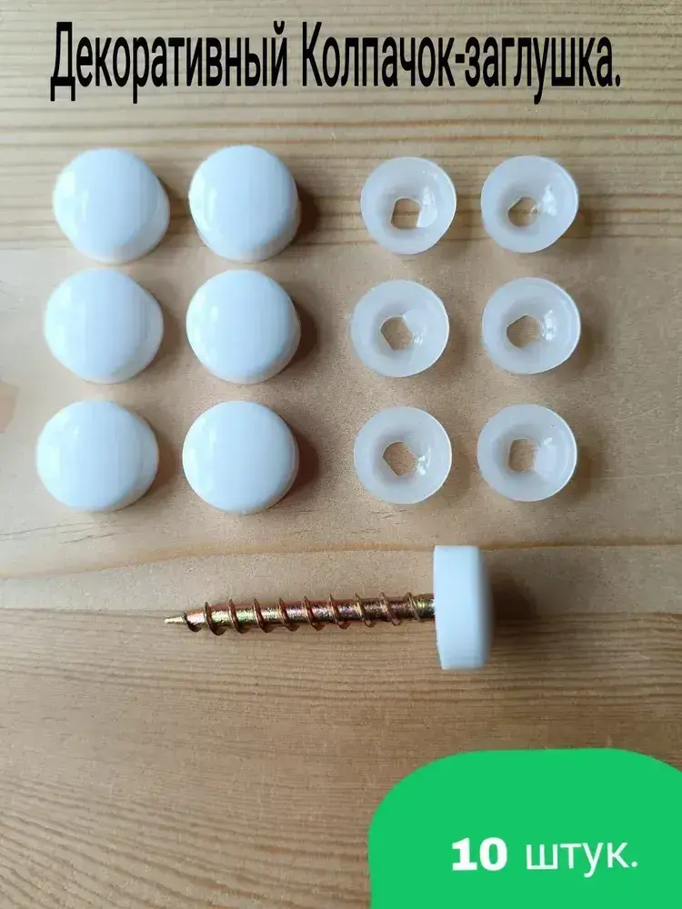 Декоративный колпачок заглушка для самореза белый 10 штук