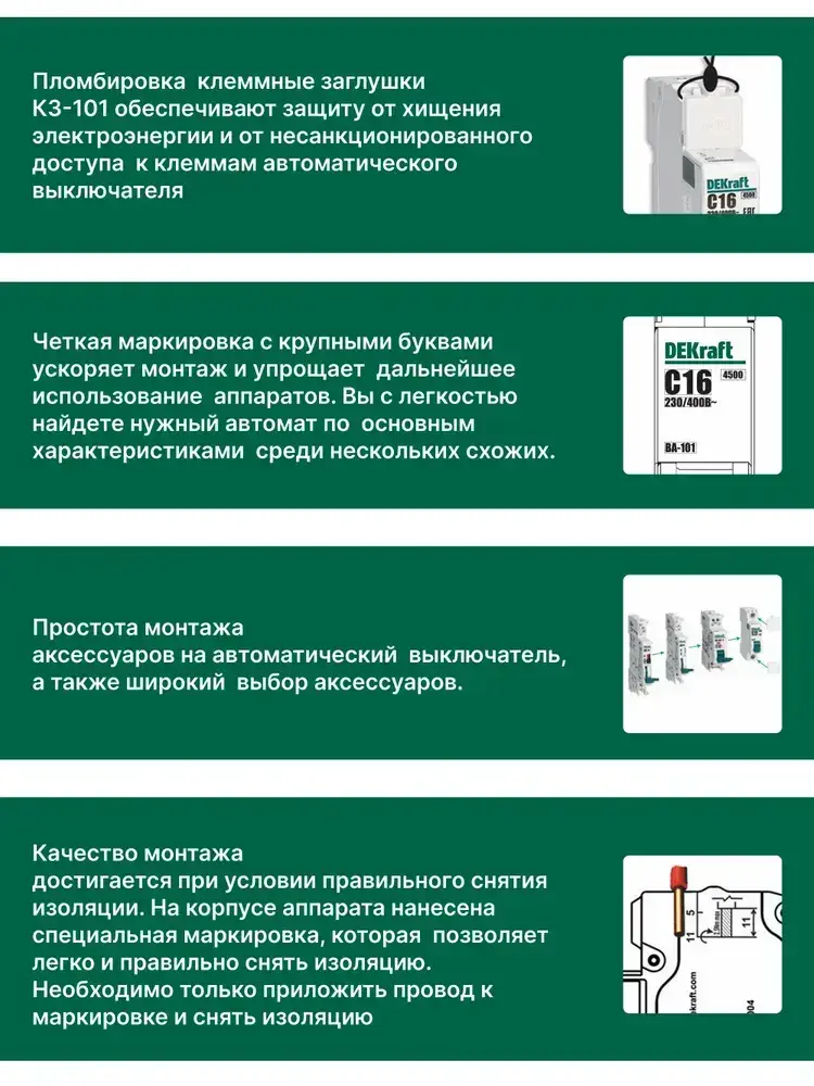 DEKraft Автоматический выключатель однополюсный 10А х-ка C ВА-101 4,5кА 1шт