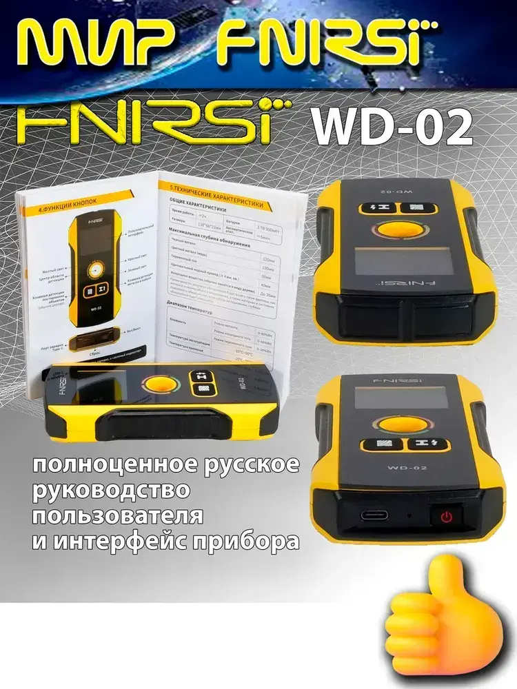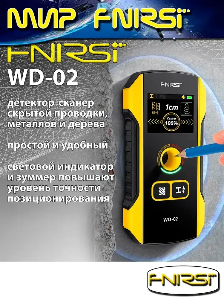 Детектор FNIRSI WD-02 скрытой проводки, металлов и дерева многофункциональный сканер стен / Русское меню и руководство