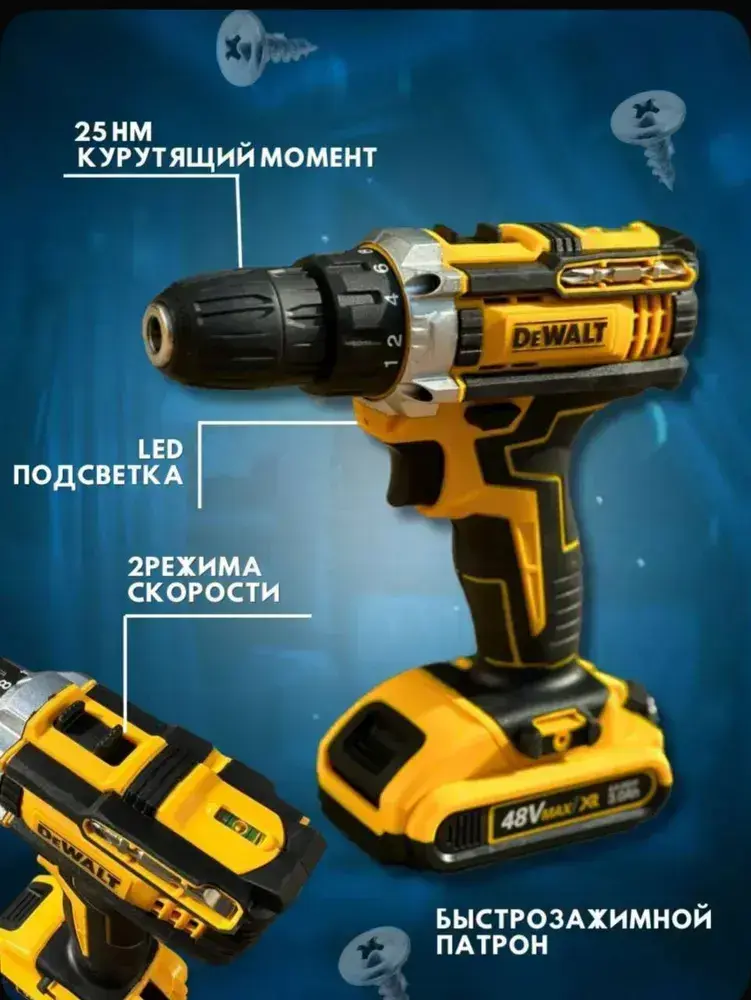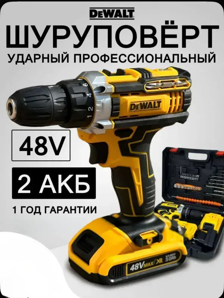 DeWALT Дрель-шуруповерт аккумуляторная, 48 В, 2 АКБ