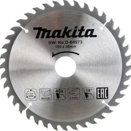 Диск пильный по дереву (190х30 мм; 40 зубьев) Makita D-64973
