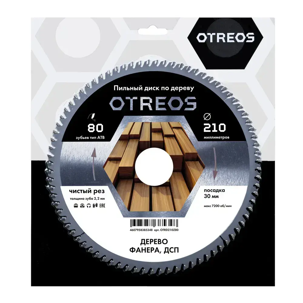 Диск пильный по дереву 210х30 мм 80 зубов АТВ, чистый рез OTREOS