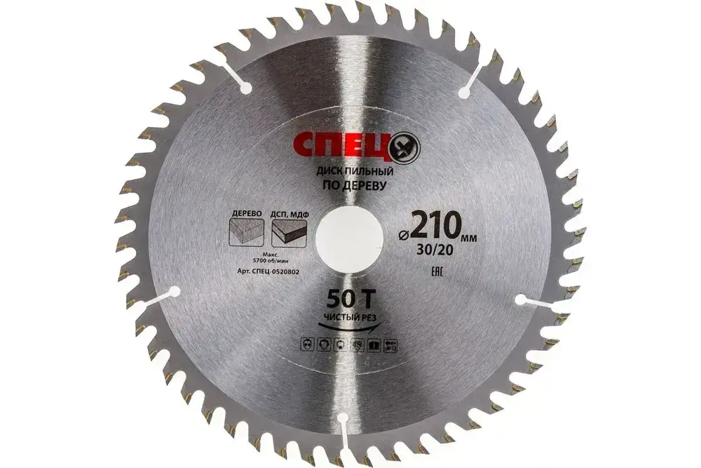 Диск пильный СПЕЦ 210мм*50зуб*30/20мм, по дереву, двойной блистер