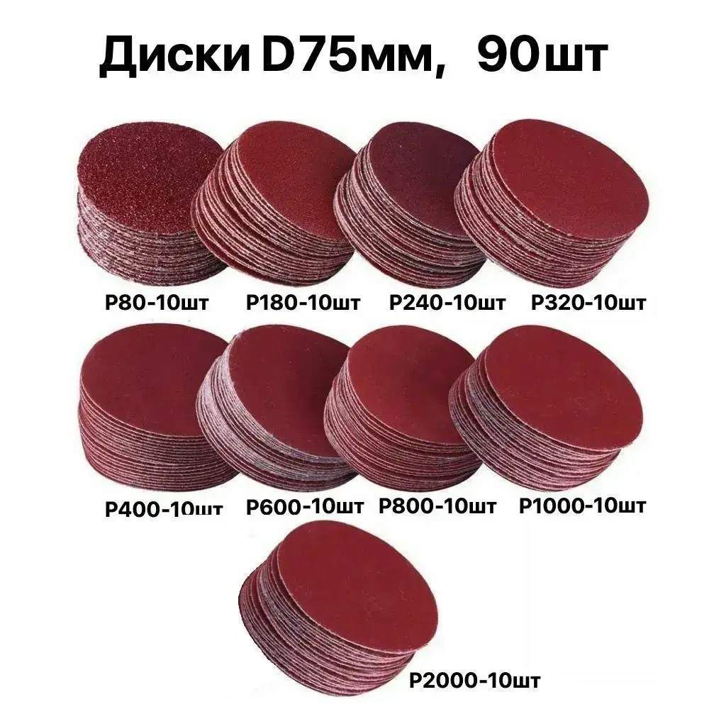 диски шлифовальные 75 мм, 90 шт на липучке