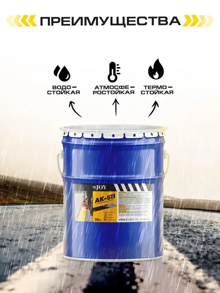 Дорожная краска АК-511 HiJOY , для ДОРОЖНОЙ разметки, краска для пола по бетону, износостойкая, быстросохнущая Белая, 7 кг