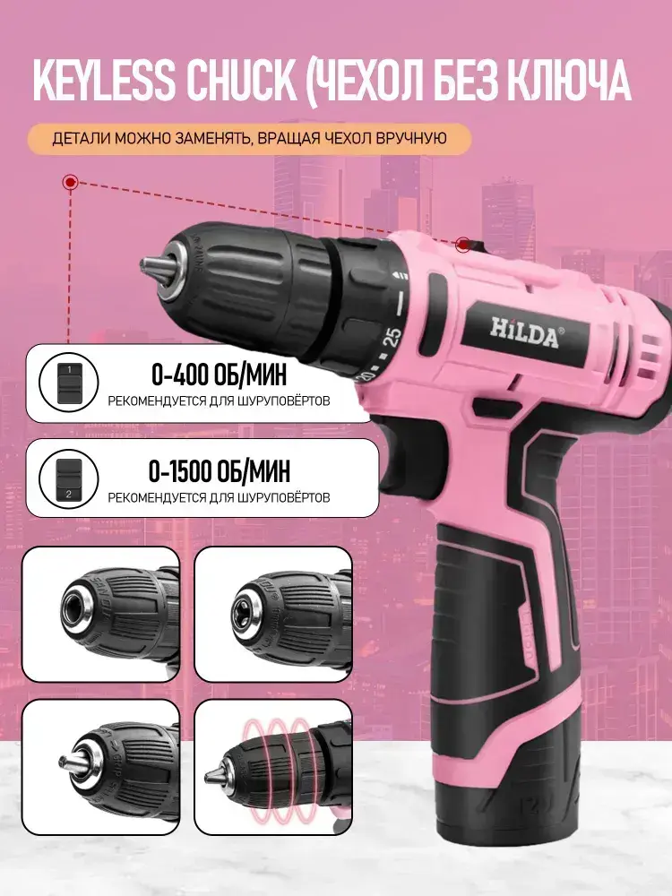 Дрель шуруповерт аккумуляторная дрель ручная, лёгкий вес, 2 скоростями 12 В,2 АКБ Li-ion, 20 Нм, 1400 об/мин, кейс + 20набор оснастки.