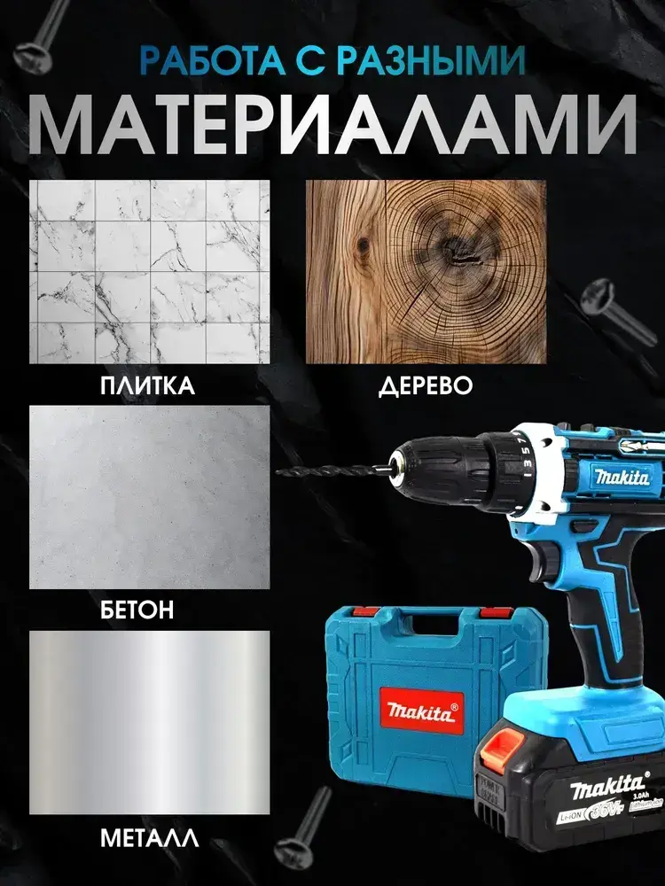 Дрель - Шуруповерт аккумуляторный 36 В 2 АКБ, 24 предмета в наборе