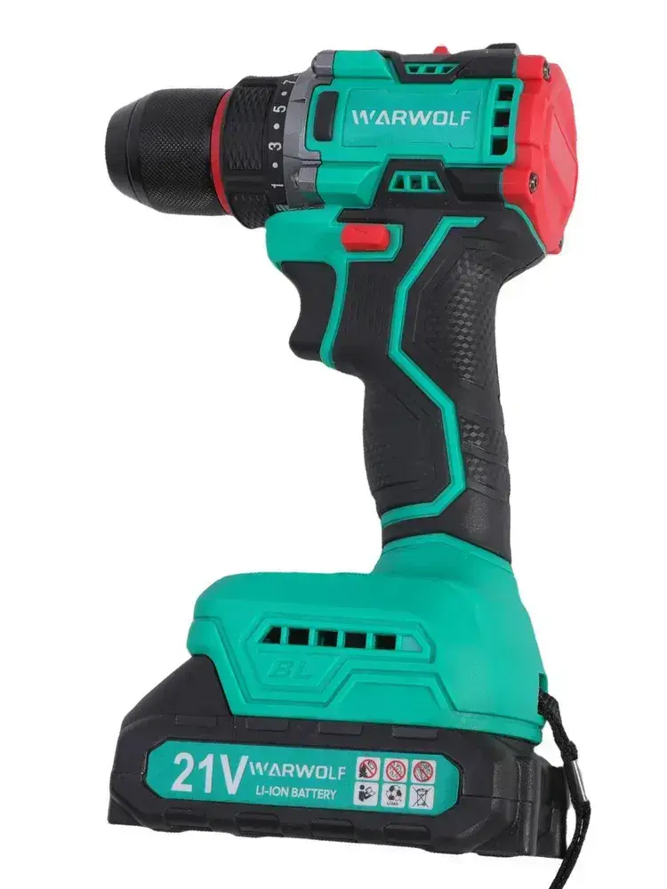 Дрель-шуруповерт аккумуляторный бесщеточный 21В, в кейсе, 2 АКБ 2.0 а/ч, многофункциональный 80 H/M для долбления, сверления, закручивания