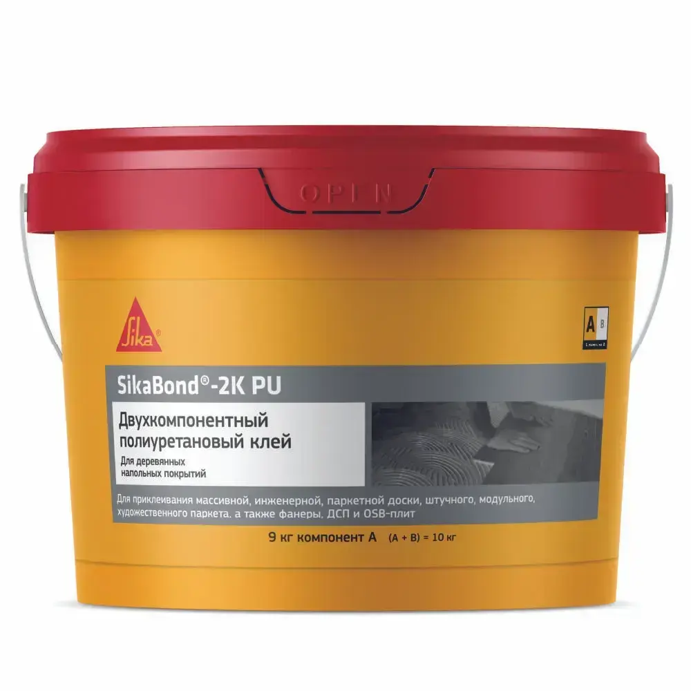 Двухкомпонентный полиуретановый клей Sikabond-2K PU (А+В), 10кг.