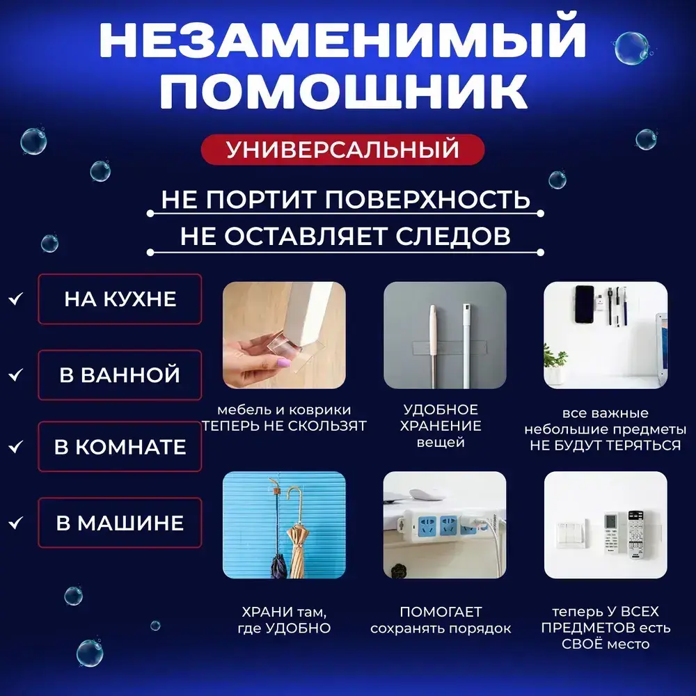 Двухсторонний нано скотч многоразовый прозрачный 3 метра, крепеж без следов