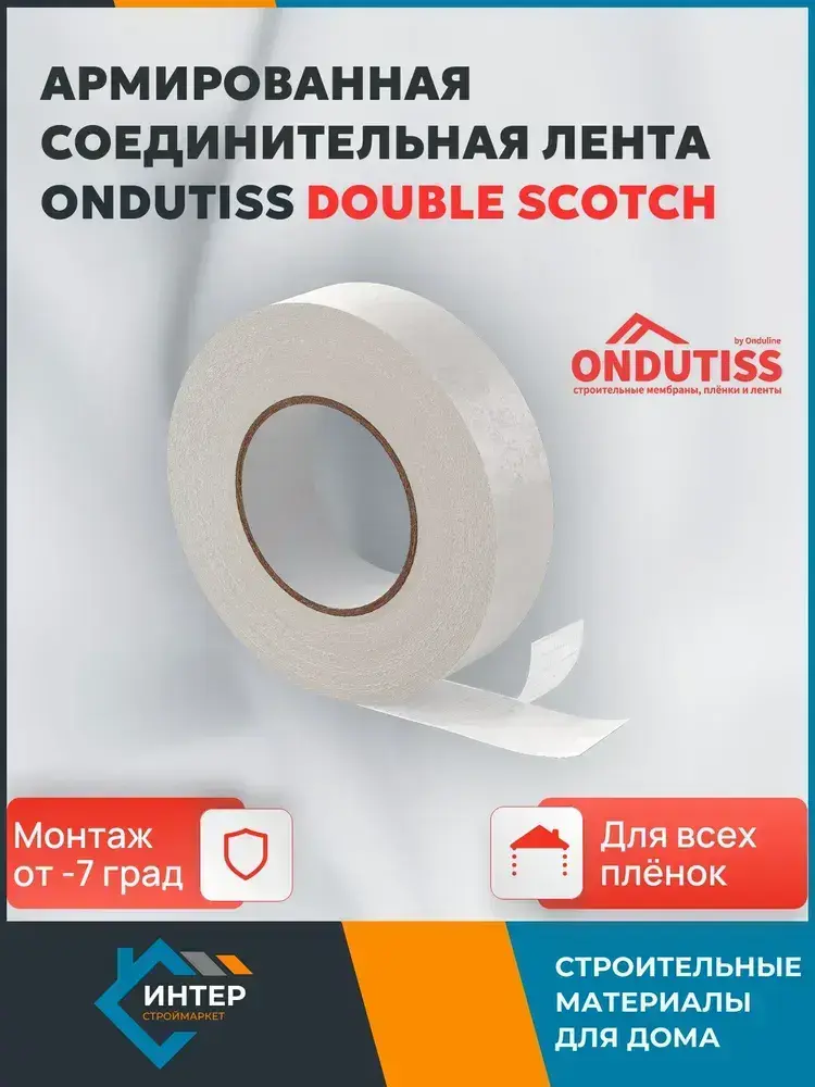 Двухсторонняя армированная монтажная лента для пленок Ондутис Double Scotch, 50 м х 38 мм / Скотч для пароизоляции Ондутис Double Scotch