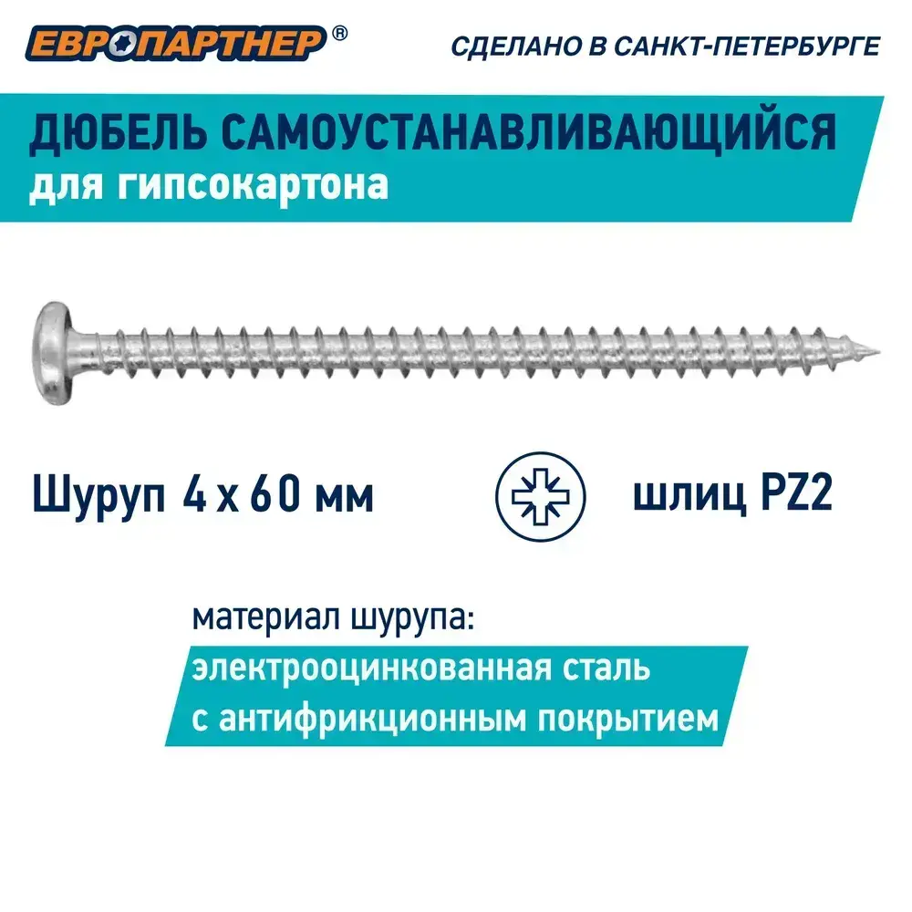Дюбель для гипсокартона самоустанавливающийся TWIN PAK нейлоновый ЕВРОПАРТНЕР (10 шт.)