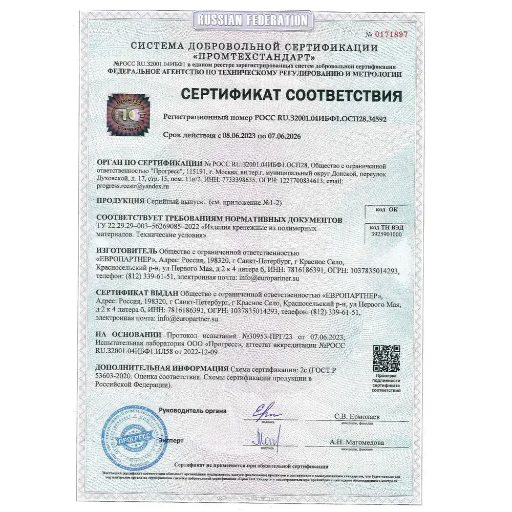 Дюбель распорный 4х20мм PND с шурупом 2,5х25мм, нейлоновый Европартнер (20 шт.)