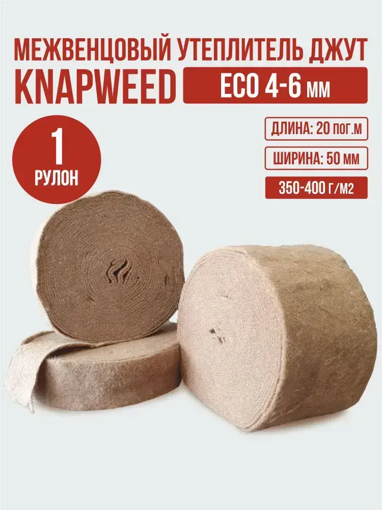 Джут 50 мм 4-6 мм 20 пог.м / 1 шт утеплитель межвенцовый для конопатки