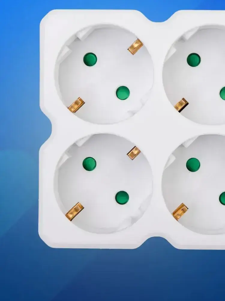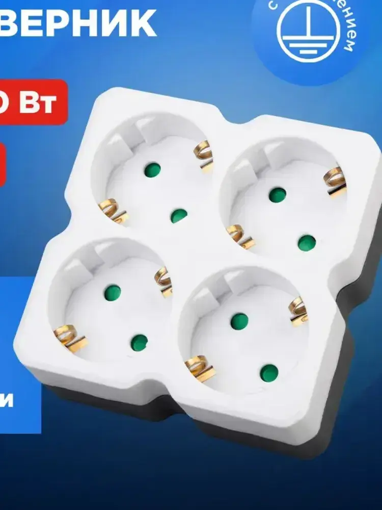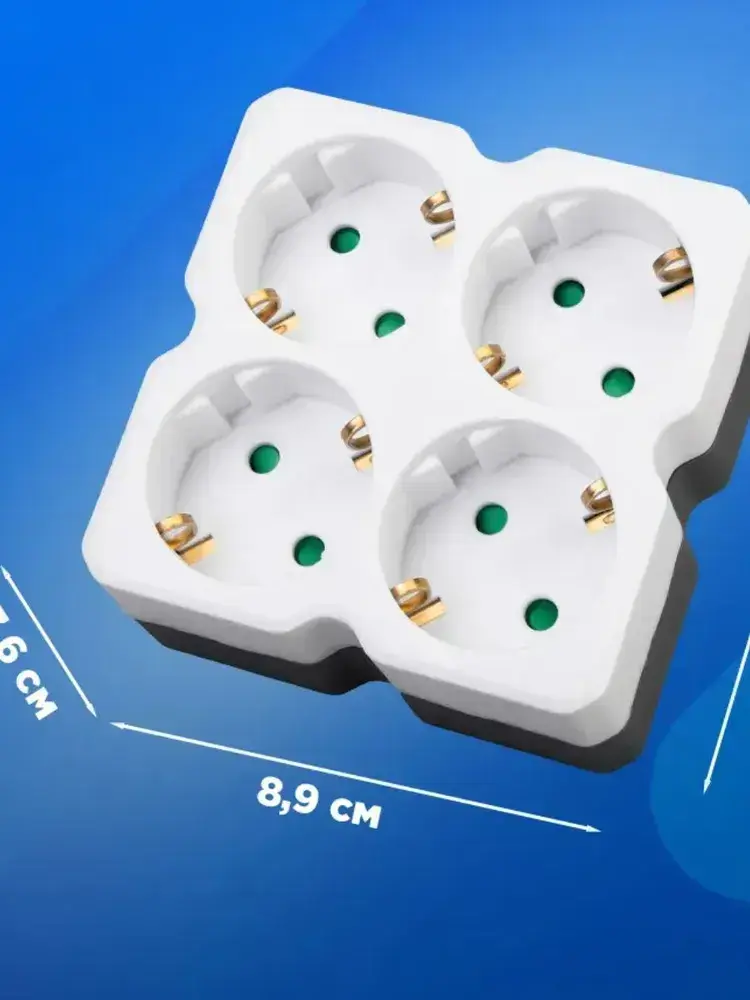 Электрический разветвитель для розетки в сеть с заземлением 4 розетки. Белый.