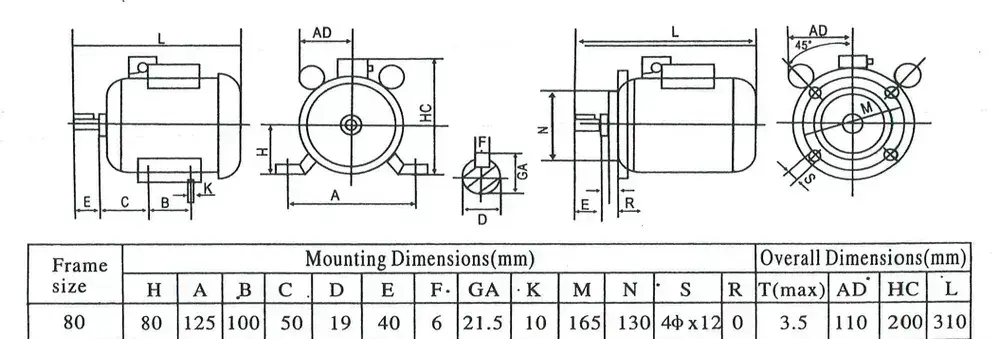 Электродвигатель асинхронный однофазный YL-8024 220В 750 Вт 1400 об/мин