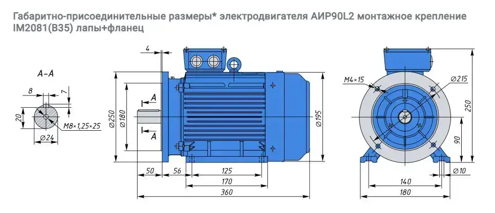 Электродвигатель общепромышленный АИР 90L2 3кВт 3000об/мин