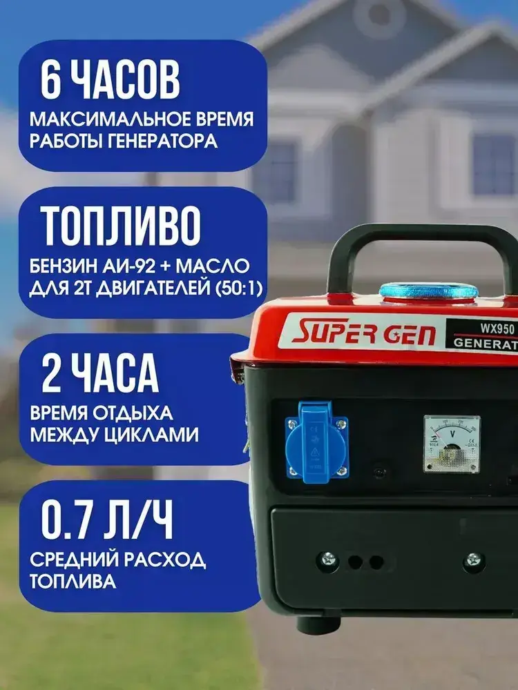 Электрогенератор бензиновый WX-950 2х-тактный 1 кВт