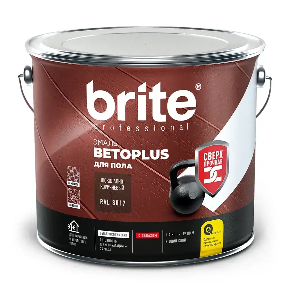 Эмаль для пола BRITE BETOPLUS сверхпрочная, шоколадно-коричневая RAL 8017, банка 1,9 кг