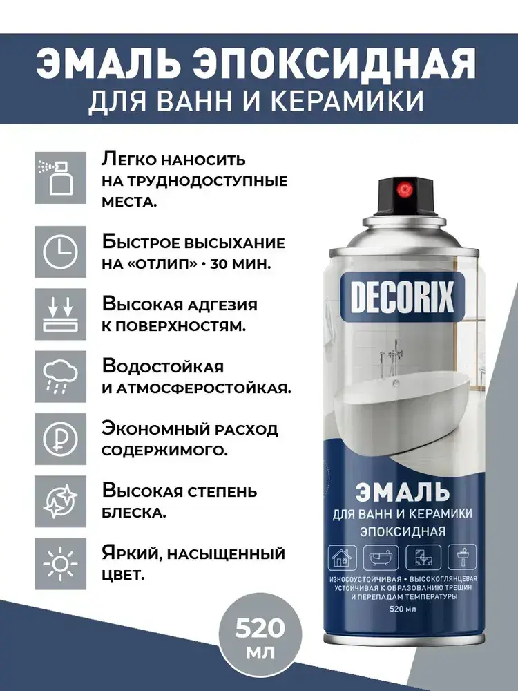 Эмаль для ванны белая аэрозоль DECORIX - краска для плитки, ванны, керамики в аэрозольном баллончике 520 мл - комплект 2 шт
