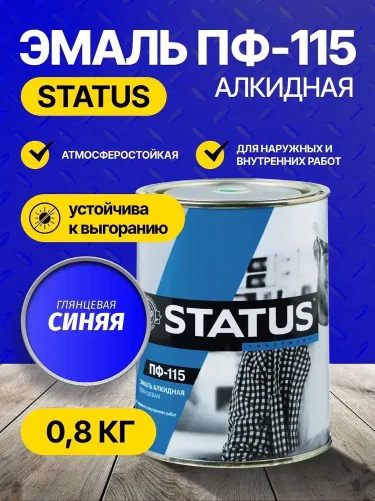 Эмаль ПФ-115 STATUS РАДУГАМАЛЕР синяя 0,8 кг , атмосферостойкая, глянцевое покрытие/краска по металлу, дереву, кирпичу и бетону /для наружных и внутренних работ