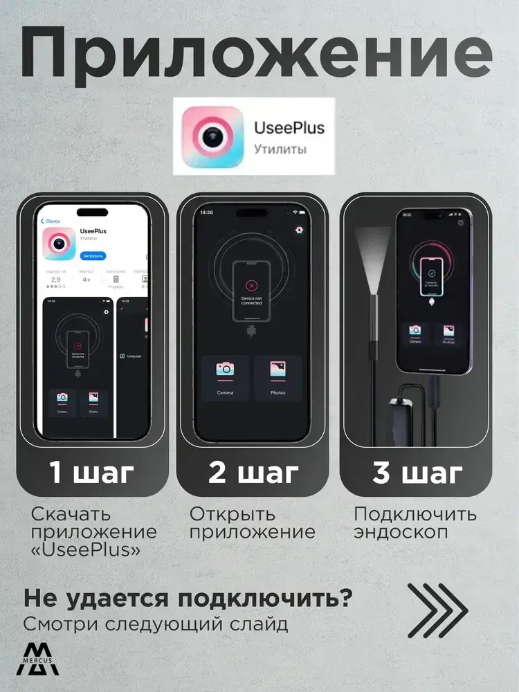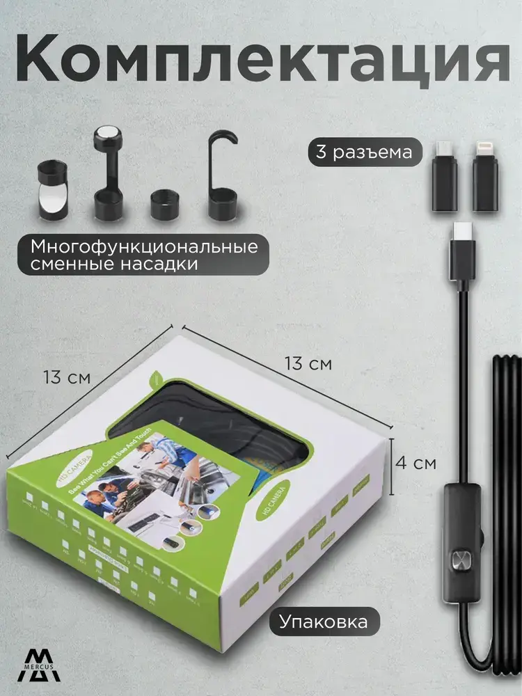 Эндоскоп автомобильный промышленный для смартфона iOS и Android с регулируемой подсветкой, полужесткий кабель, видеоэндоскоп для айфон MERCUS