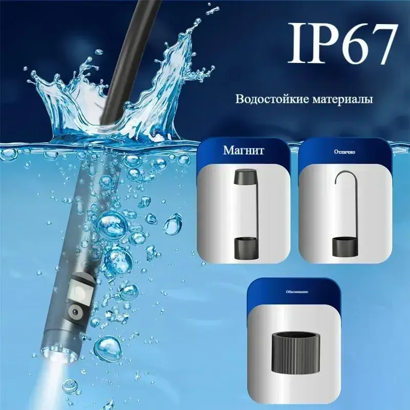 эндоскоп автомобильный, С 8 регулируемыми светодиодными лампами, камера 1920 HD, 2 метра полужёсткого кабеля, подходит для iOS и Android ,эндоскоп для смартфона с подсветкой
