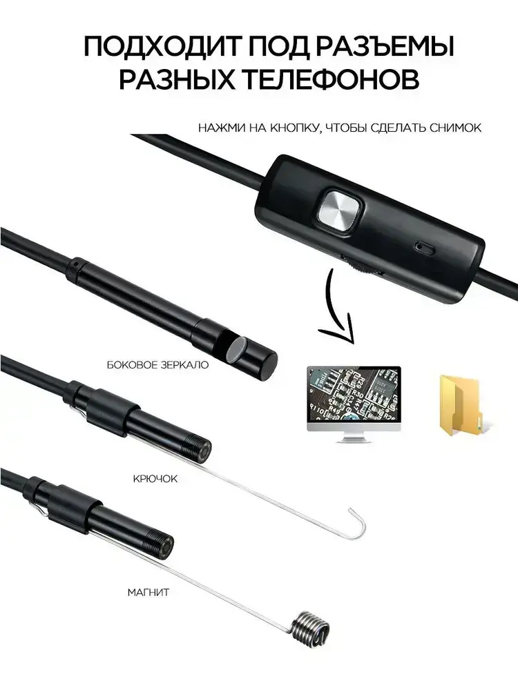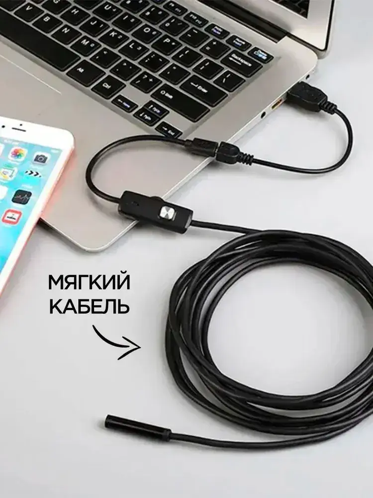 Эндоскоп для смартфона автомобильный водонепроницаемый, гибкая видеокамера с подсветкой USB для смартфона Android, MAC, для PC,Type-C 2 метра