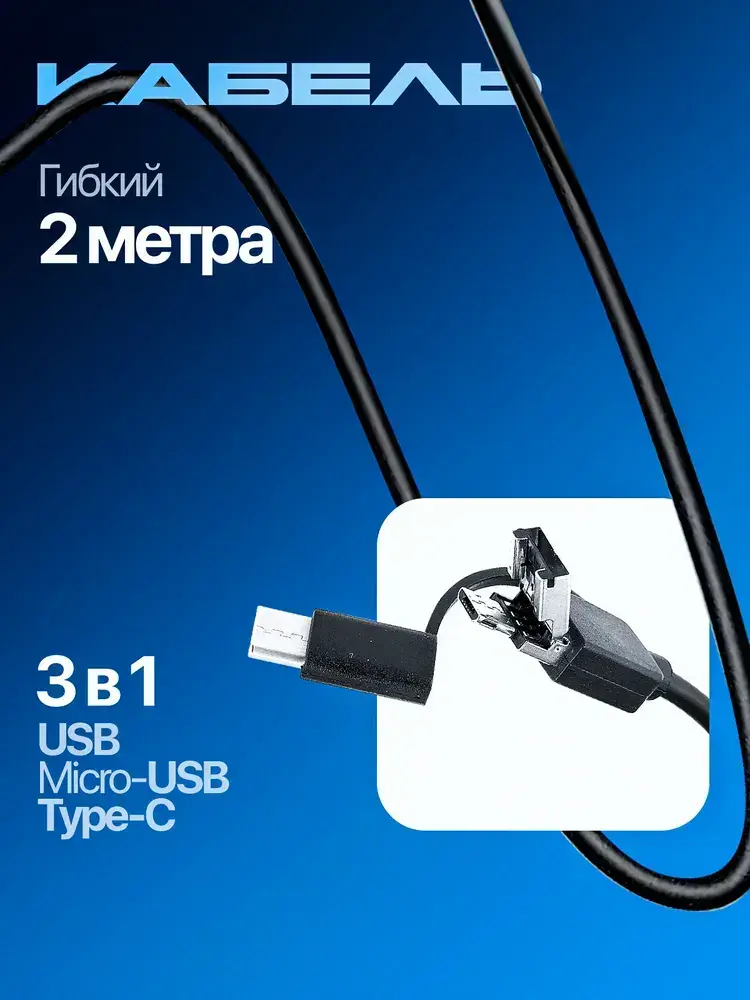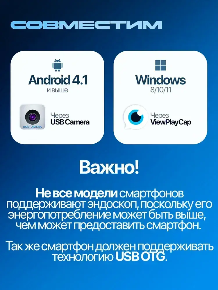 Эндоскоп, гибкая камера для смартфона и ПК с подсветкой 2м, Орбита OT-SME14
