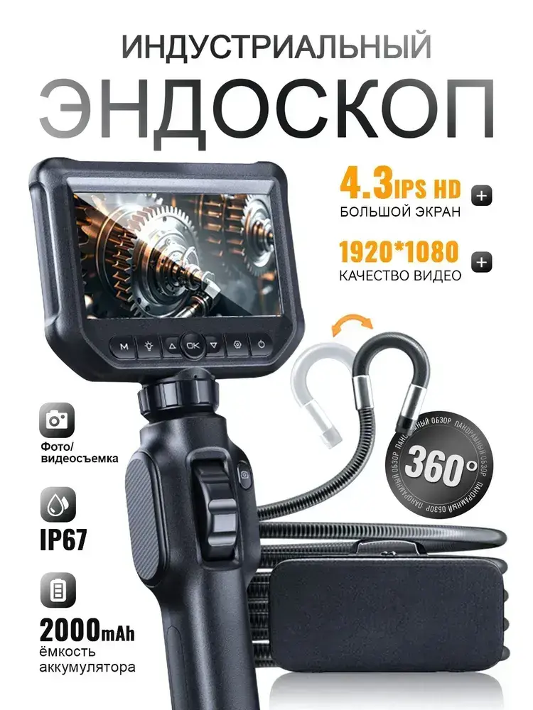 Эндоскоп/180 градусов/8 мм с ЖК -ДИСПЛЕЕМ/ручной эндоскоп с дисплеем, для осмотра канализационной трубы автомобильного двигателя