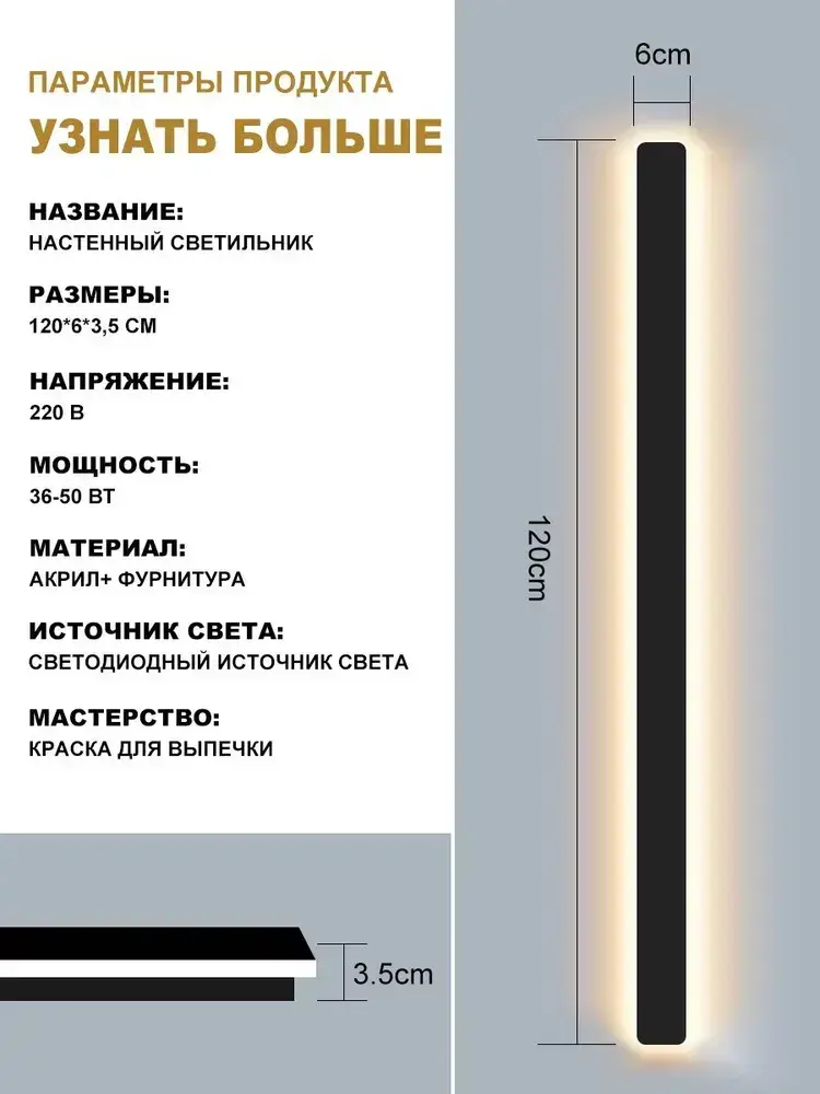 EZCOK Светодиодный уличный настенный светильник IP65/ 1.2M /36 Вт