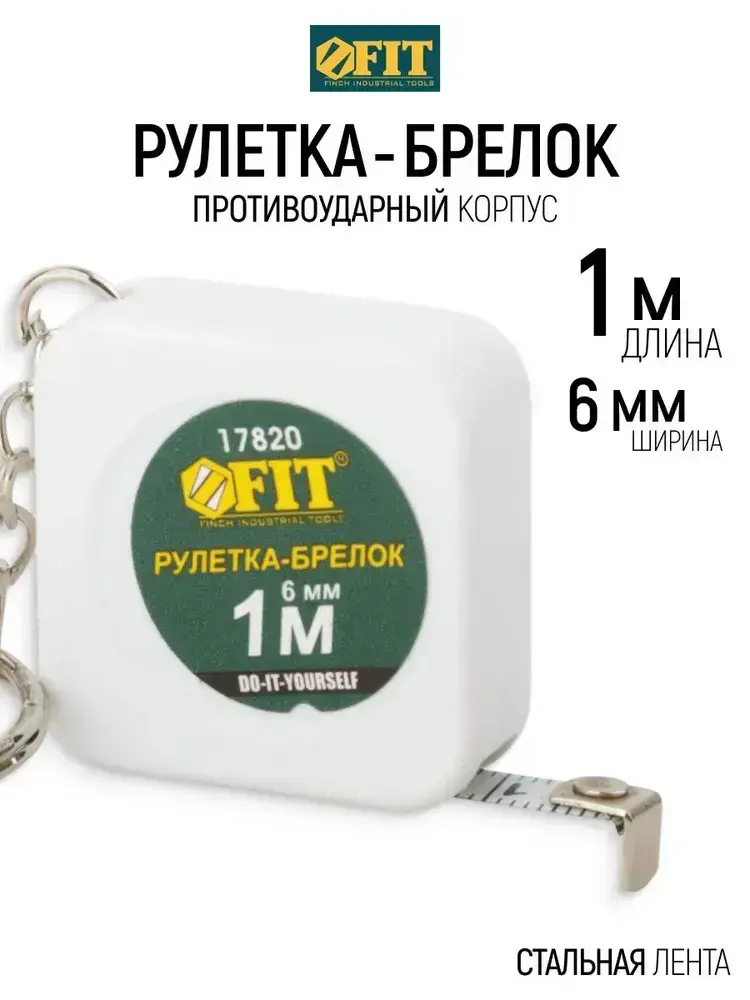 FIT Рулетка брелок 1 м x 6 мм строительная измерительная стальная лента