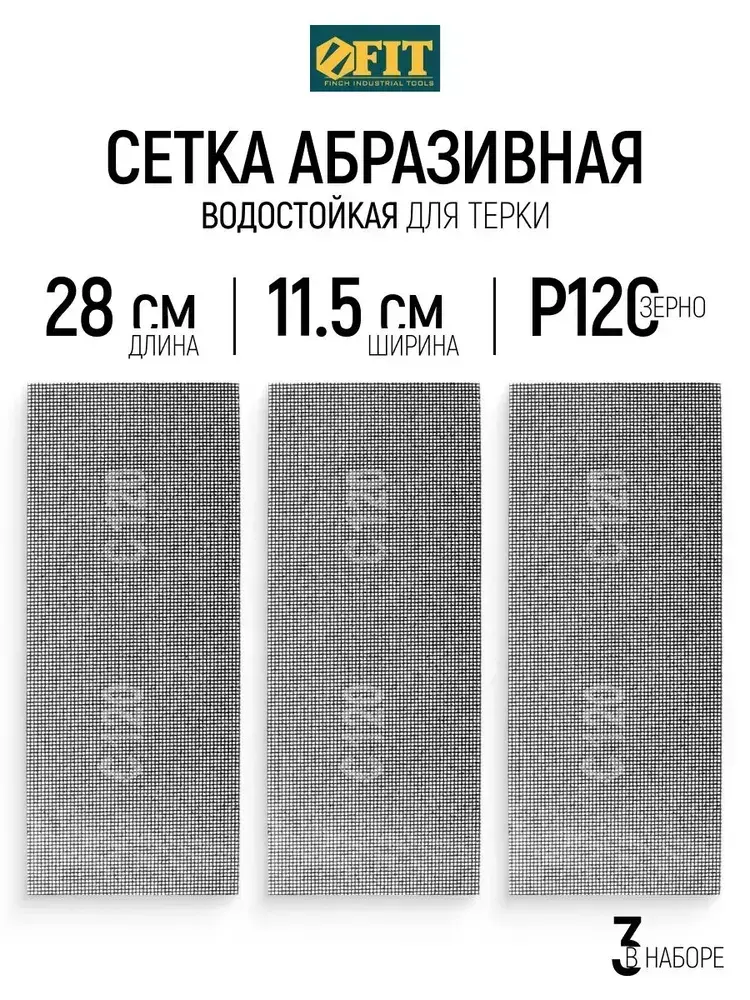 FIT Сетка абразивная Р120, 115 х 280 мм, 3 шт. для шлифовальной терки