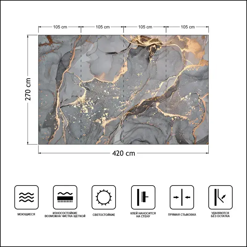 Фотообои мрамор абстракция флюид "Флюид #1", 420см x 270см, флизелин премиум моющиеся GradientArt FLU1420270N