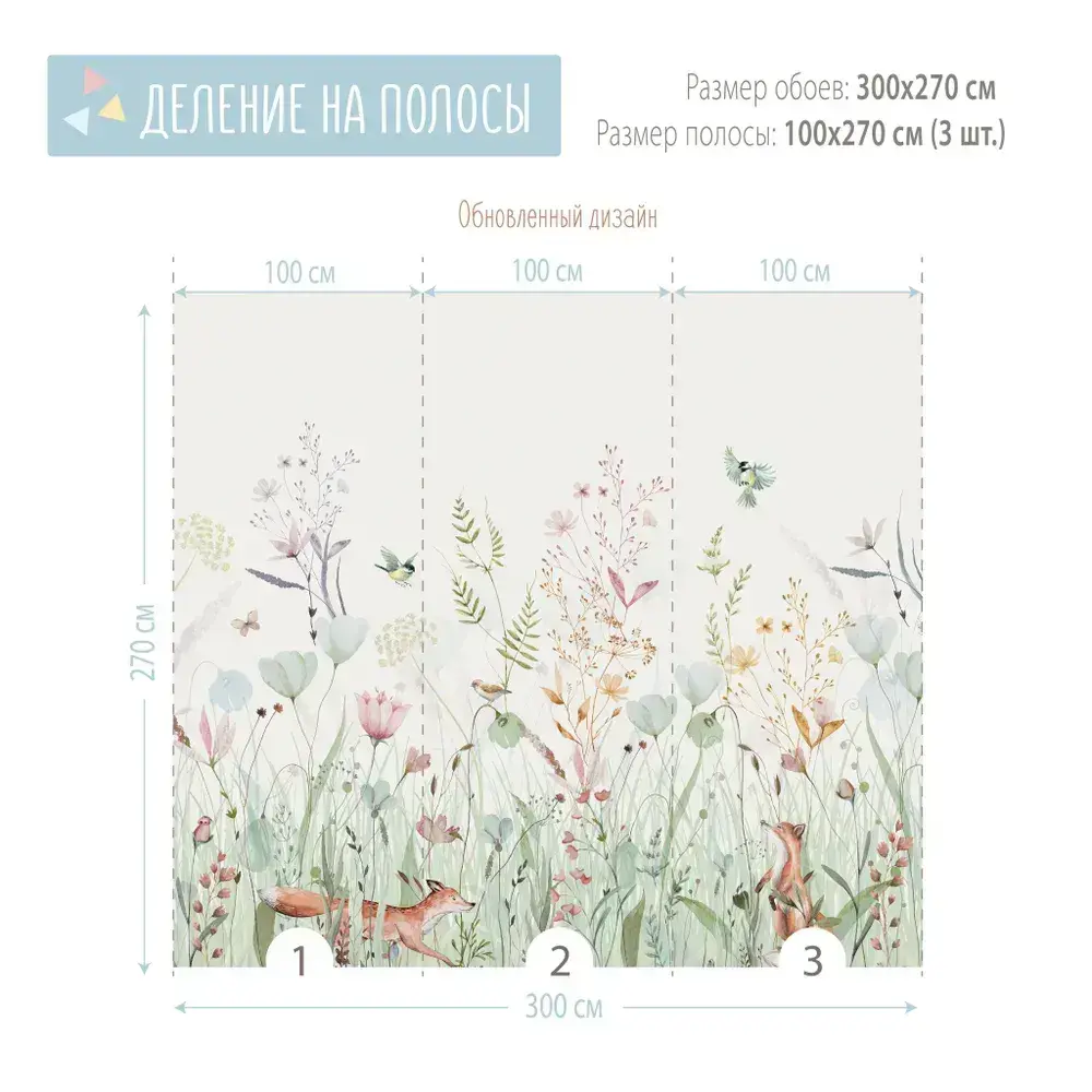 Фотообои на стену Цветы, Трава, Лисы 300*270 см флизелиновые Мондеко