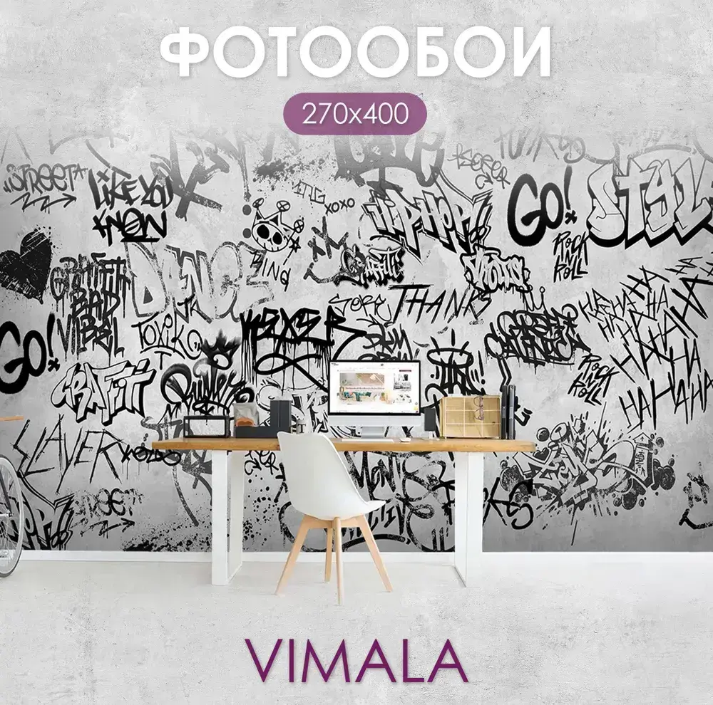 Фотообои Vimala "Граффити" 400Х270, обои виниловые, обои в гостиную, спальню