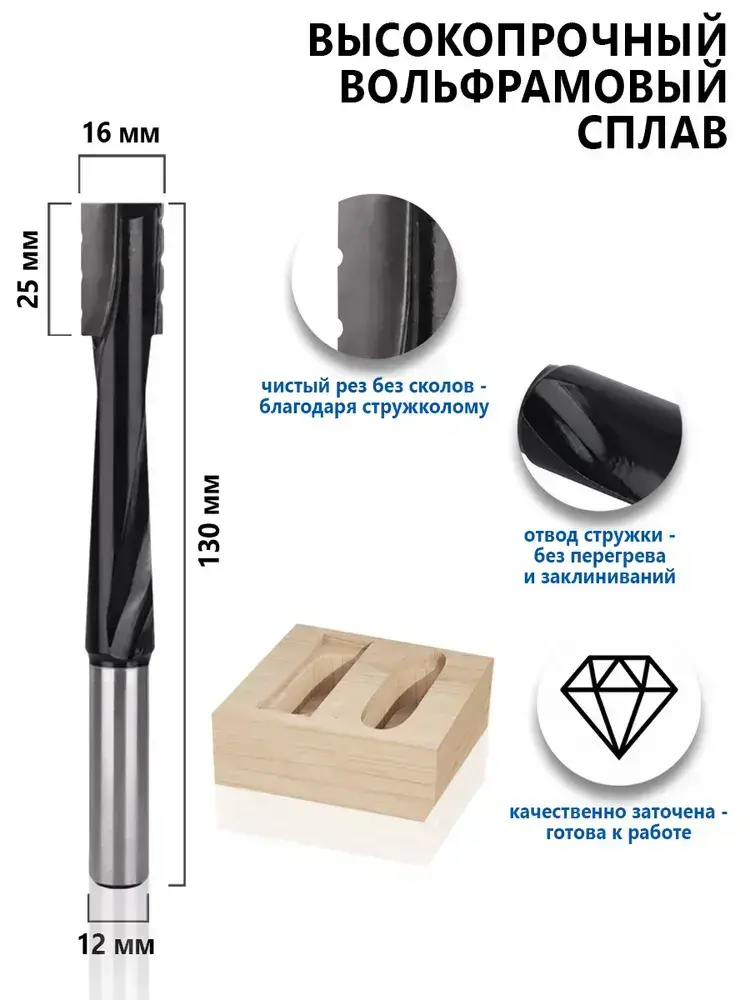 Фреза для врезки замков со стружколомом, под замок 16x30x80x130 хвостовик 12 мм, высокопрочный вольфрамовый сплав