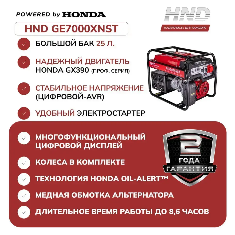 Генератор бензиновый HND GE7000XNST с двигателем Honda