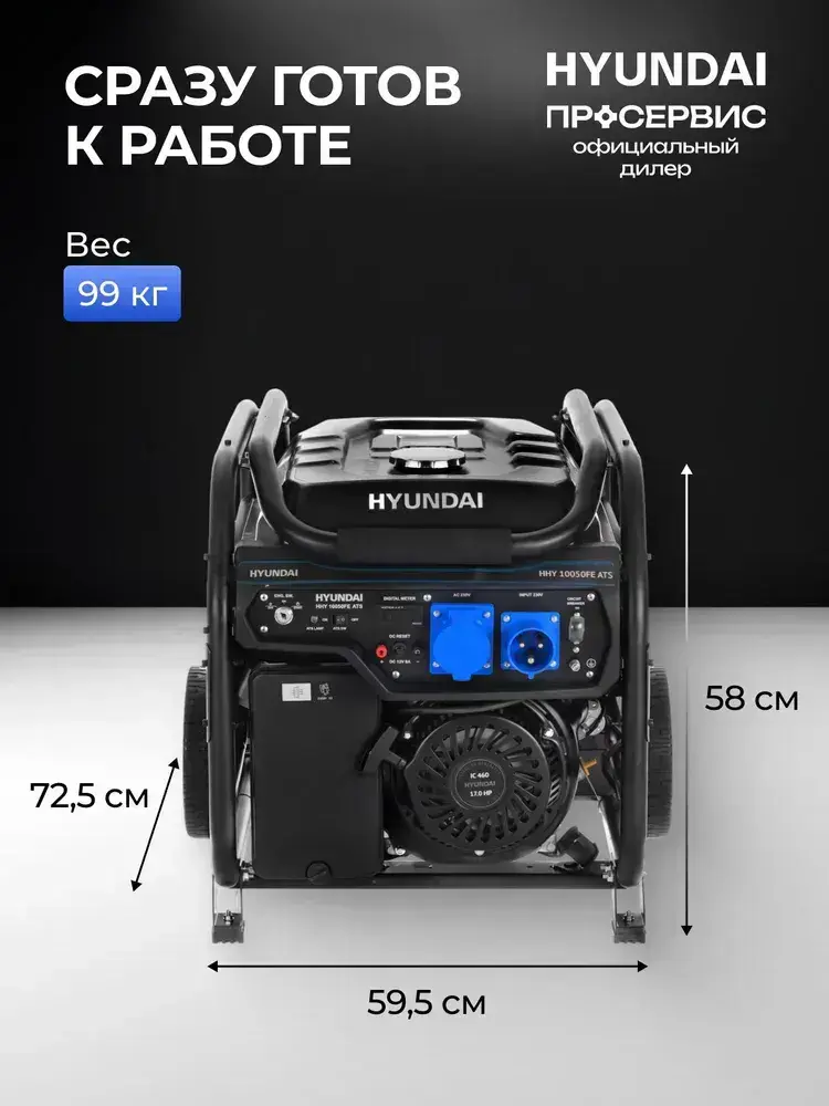 Генератор бензиновый Hyundai HHY 10050FE ATS 8 кВт, с встроенным блоком автозапуска и автоматической регуляцией напряжения, электростанция 99 кг