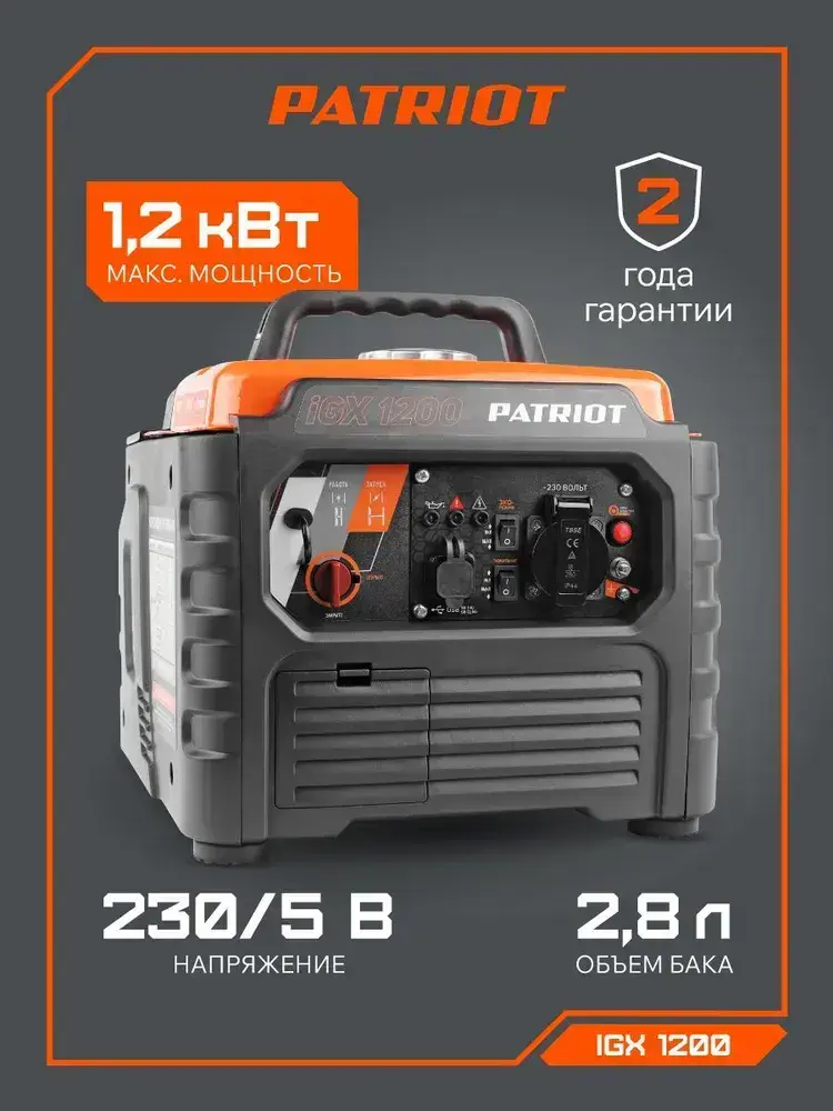 Генератор инверторный бензиновый PATRIOT iGX 1200, 2.5лс, 1200Вт