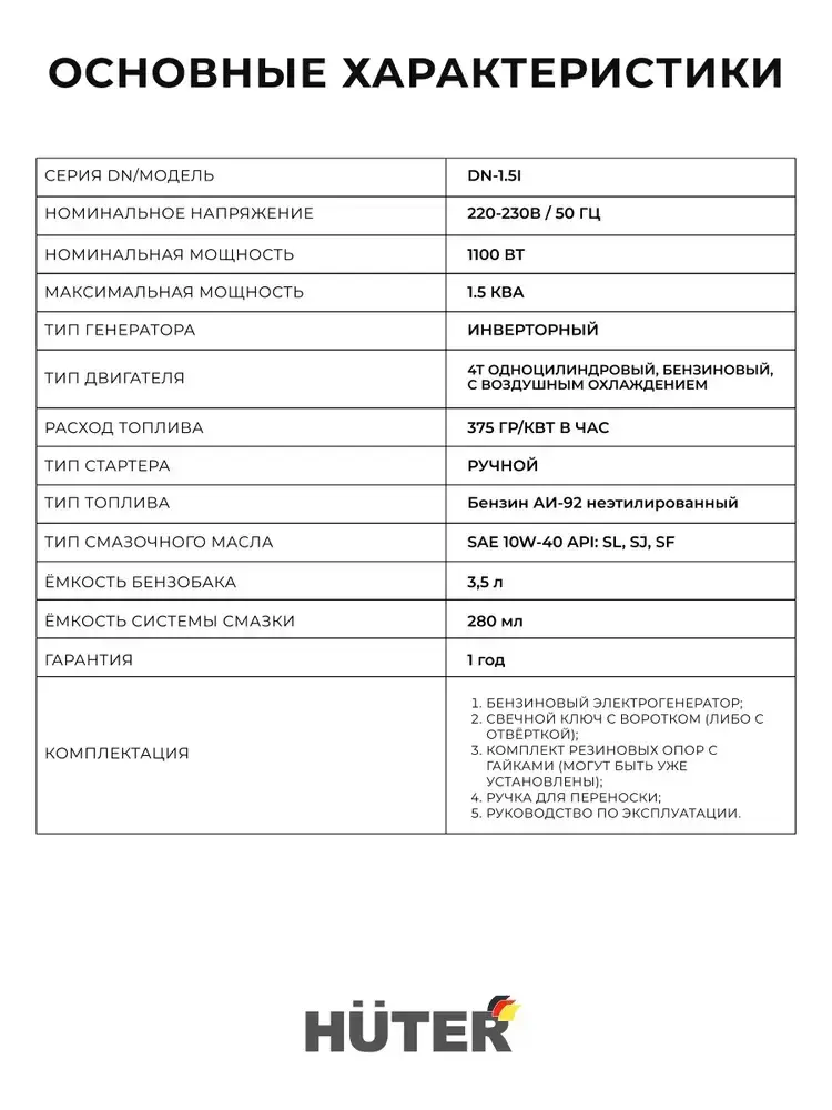 Генератор инверторный HUTER DN А1,5i, генератор бензиновый инверторный 1.1 кВт