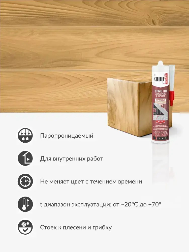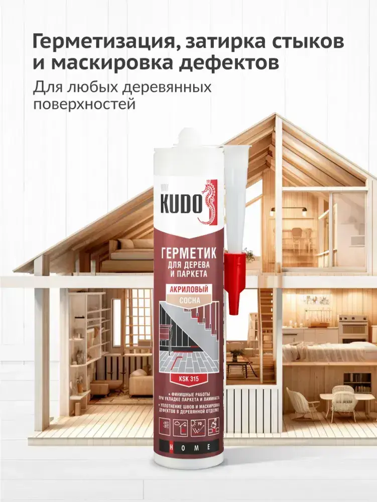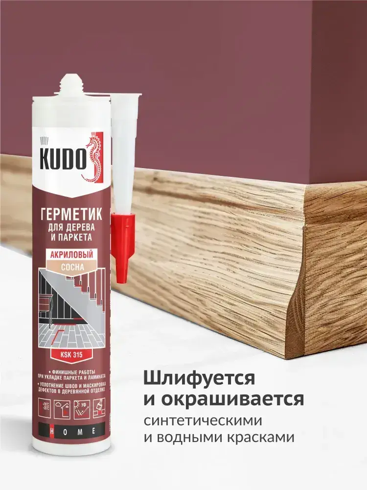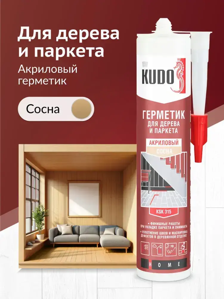 Герметик акриловый KUDO "KSK 315" для дерева и паркета, 280 мл, Сосна