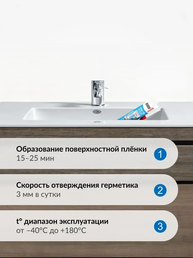 Герметик для ванной и кухни силиконовый KUDO "KSK 183", 280 мл, серый