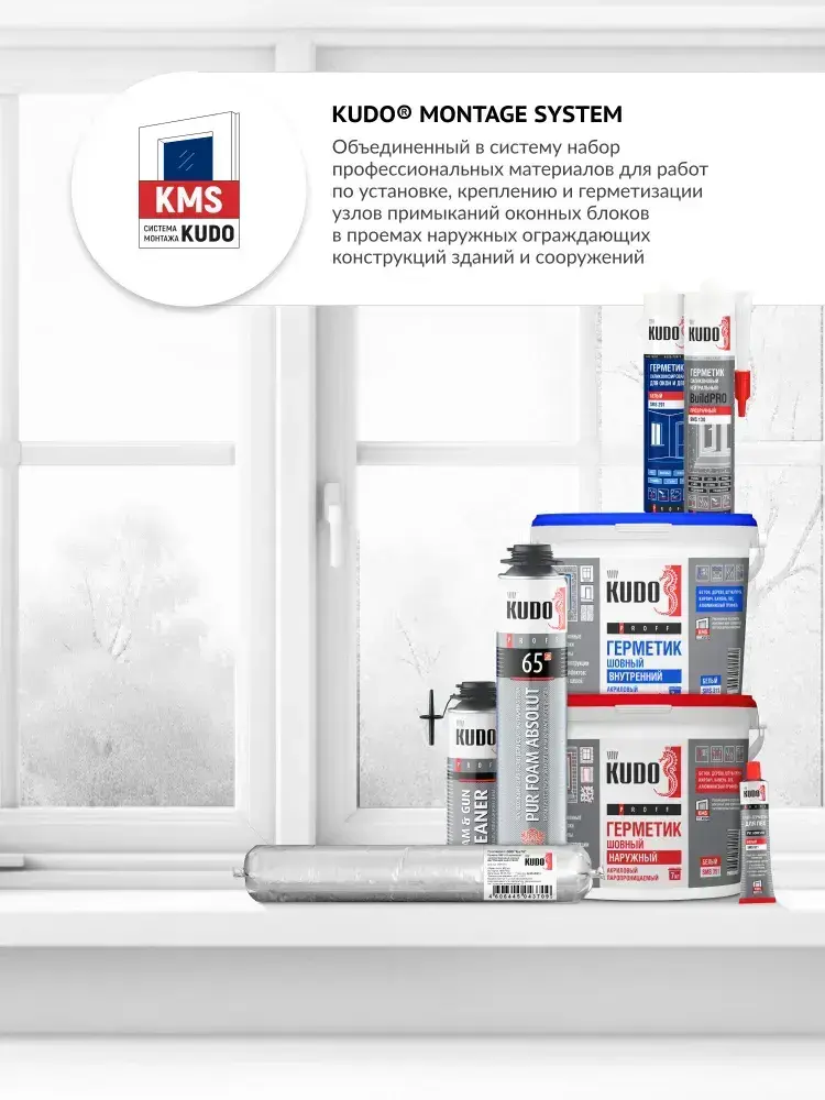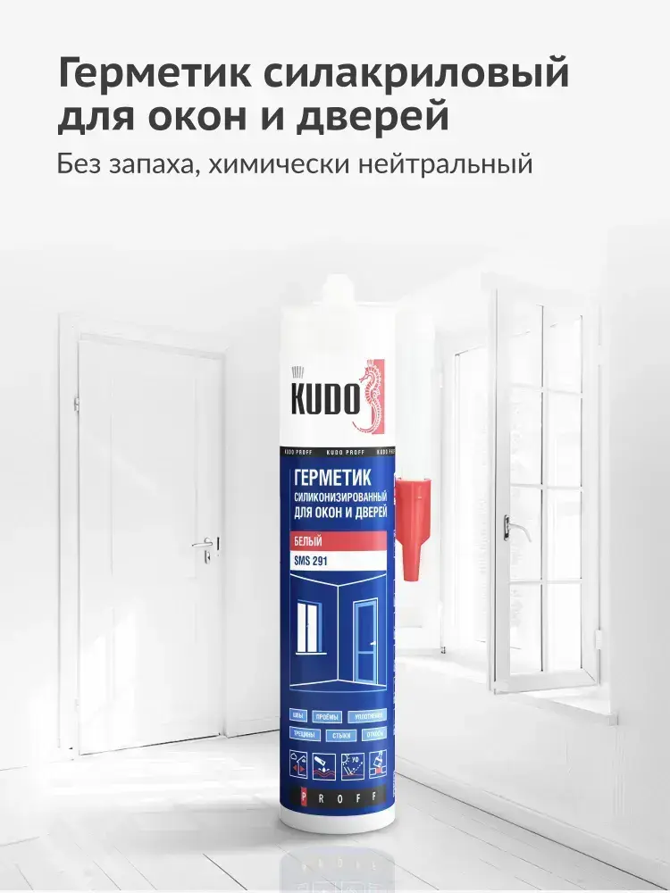 Герметик KUDO PROFF профессиональный силиконизированный для окон и дверей универсальный белый SMS-291