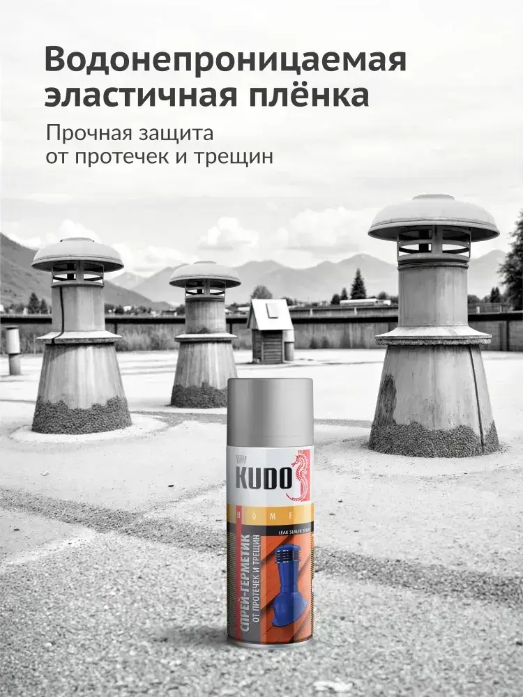 Герметик-спрей аэрозольный KUDO, герметизирующий спрей от протечек и трещин, 0.52 л, серый