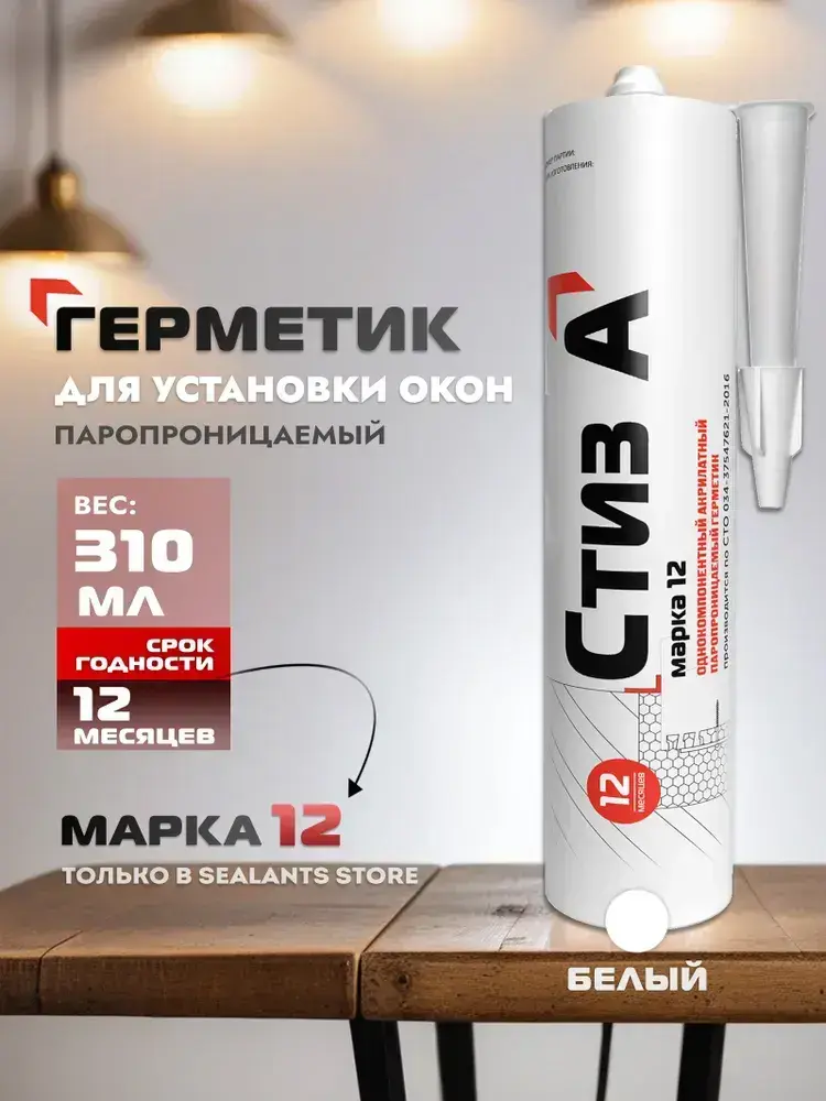 Герметик СТИЗ А, 310 мл, для установки окон, Паропроницаемый, белый
