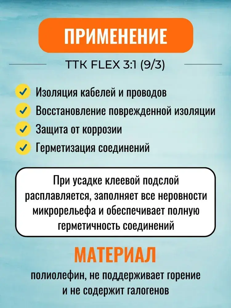 Гибкая термоусадочная клеевая трубка ТТК "Flex"(3:1)-9/3 чёрная с коэффициентом усадки 3:1 (КВТ)