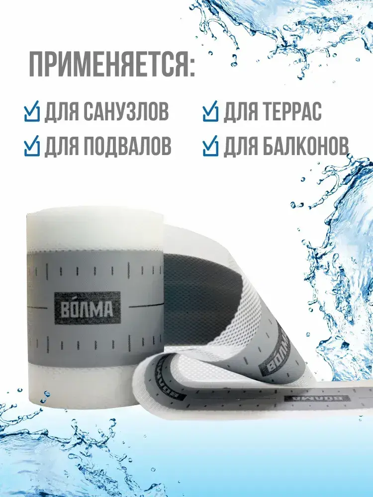 Гидроизоляционная лента для ванной, душевой ВОЛМА-Контур 10 м * 2шт, 20 м, гидроизоляция для душевой, для ванны