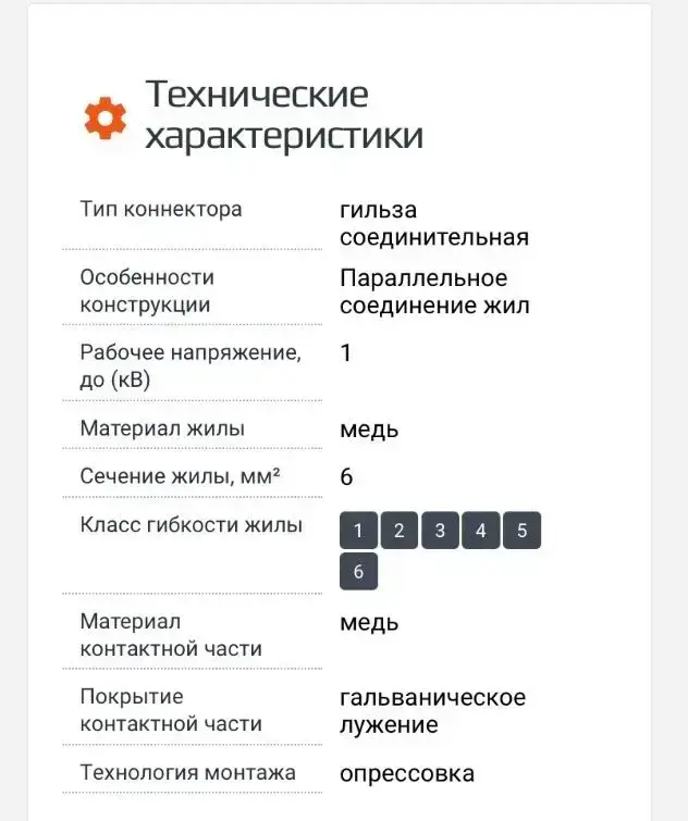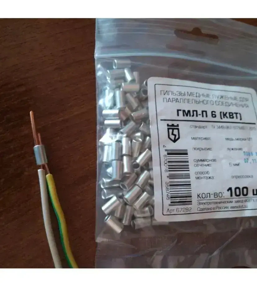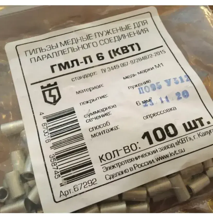 Гильза кабельная ГМЛ-П 6 медная луженая для параллельного соединения 30 шт
