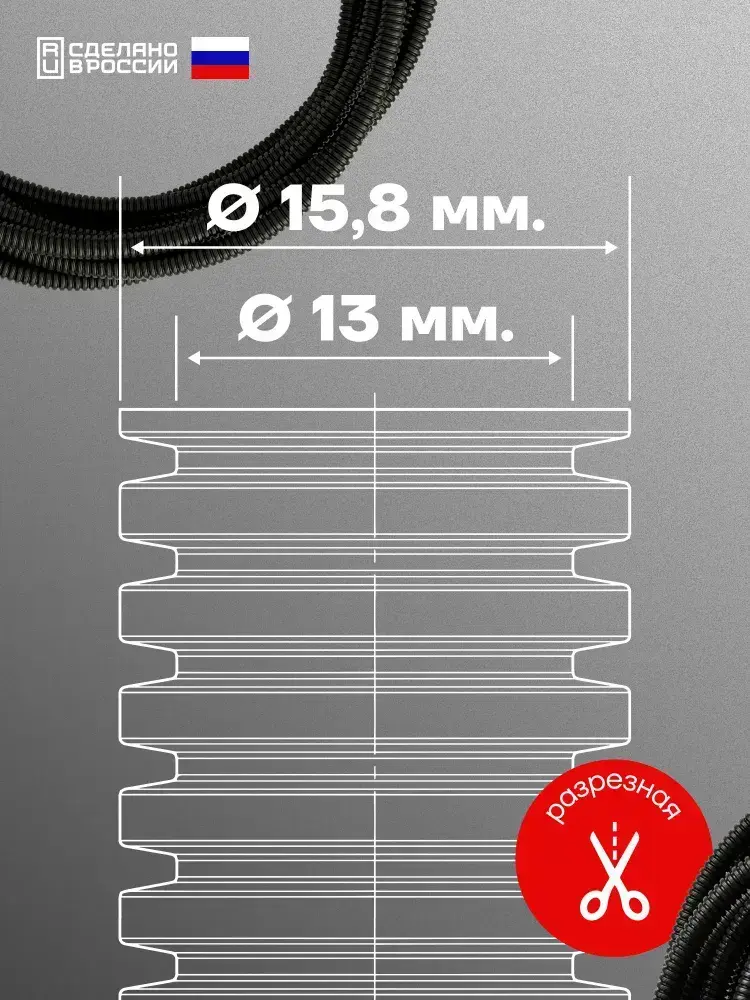 Гофра для укладки проводов разрезная, внутренний диаметр 13 мм, длина 10 метров. Без протяжки. Гофра Сэппра